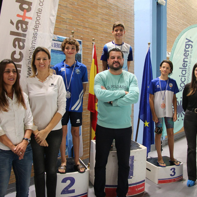 Al acto de entrega de medallas ha asistido el delegado municipal de Deportes, Pedro Gracia junto con la delegada de Igualdad, Abril Castillo. Además han participado la presidenta del CN Alcalá Asna El Achrafi García y María Cabezas, directora de Marketing de la empresa alcalareña Social Energy.