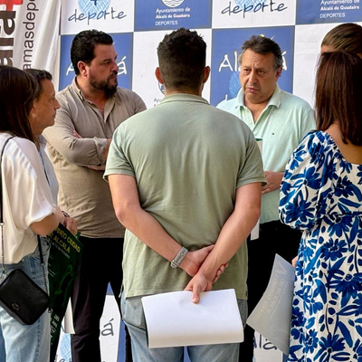 subdelegada de tenis de la Federación Andaluza de Tenis, Carlos Portillo, presidente del Club de Tenis Oromana y Manuel Alba, vicepresidente del mismo, así como de Ana Pellegrini del Grupo Avisa y Adán Martín, jugador de tenis local participante en el torneo.