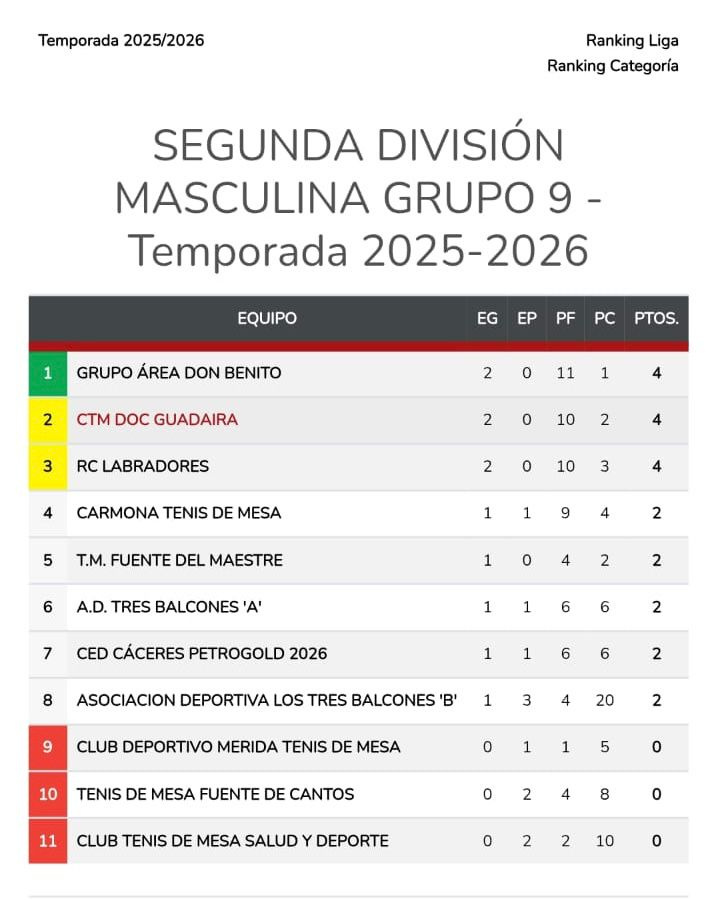 El Club de Tenis de Mesa DOC Guadaira ha logrado una contundente victoria por 6-0 en su encuentro de Segunda Nacional ante la Asociación Deportiva Tres Balcones de Cáceres. Lo más destacado del partido fue el debut de Lucas Llamás, quien impresionó al ganar sus dos partidos con un claro 3-0, contribuyendo decisivamente a la victoria de su equipo.